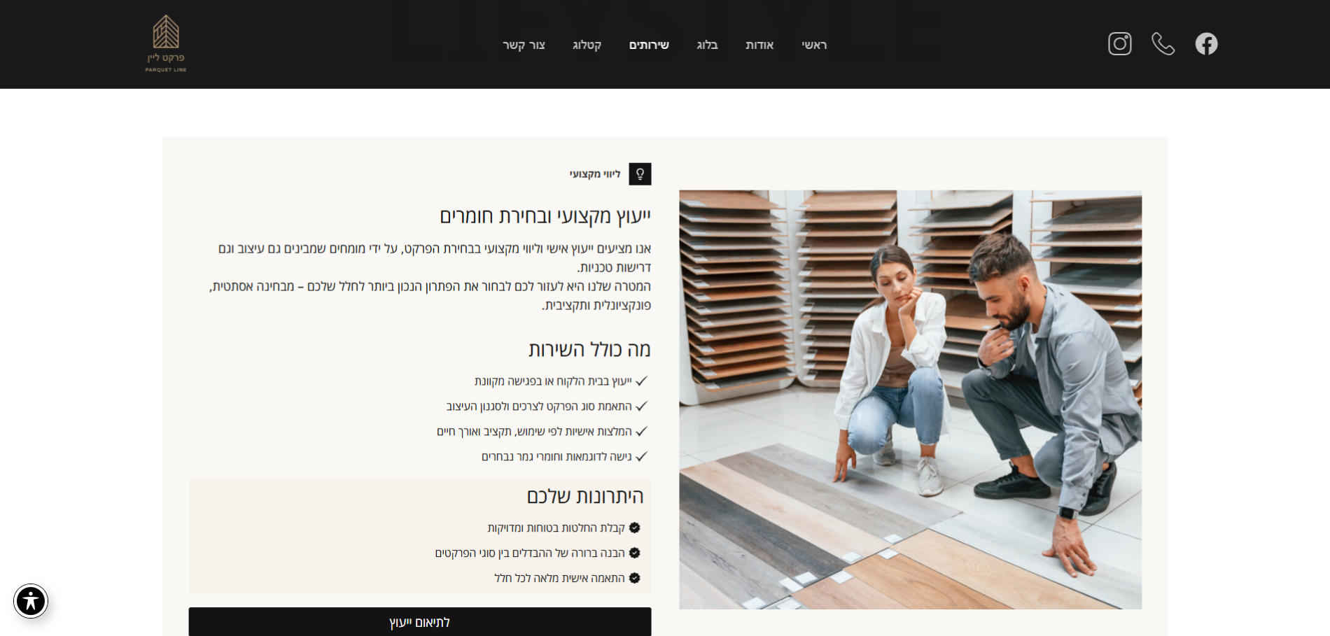 האתר של Parket Line עוצב כדי לשקף את מהות המותג – איכות, אלגנטיות ודיוק.